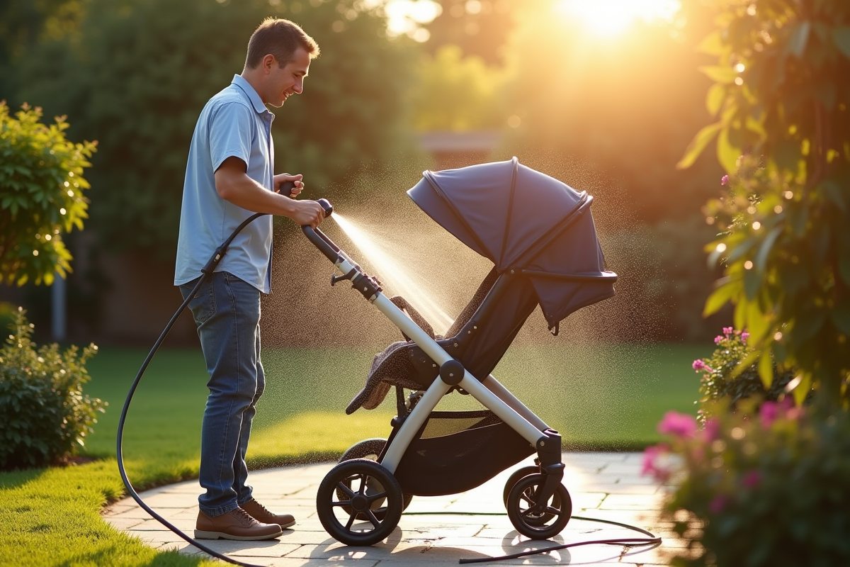 Pour garantir la durabilité de votre poussette Maclaren, l’entretien régulier du châssis et des roues est indispensable. Le châssis, souvent soumis à des contraintes importantes, mérite une attention particulière. Utilisez une solution d’eau chaude et de lessive vaisselle pour nettoyer efficacement le châssis. Appliquez cette solution avec une éponge non abrasive pour éviter de rayer les surfaces métalliques ou plastiques.