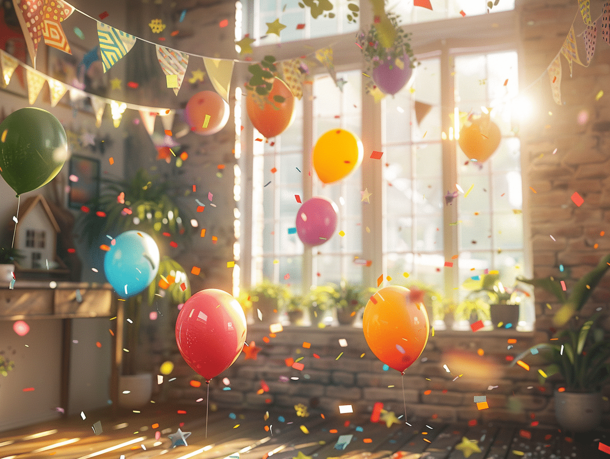 - Icônes et graphiques : Ballons, gâteaux, confettis donnent le ton et rappellent l’esprit de la fête.